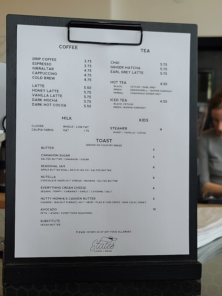 As you step into States Coffee, you're greeted by an inviting atmosphere infused with a sense of community. The spacious setting, adorned with warm tones and comfortable seating, invites you to linger—whether you're diving into your laptop for some work or catching up with friends. The outdoor seating offers a refreshing spot to bask in the California sun while sipping on your favorite brew.